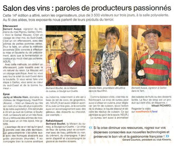 Le salon des vins 2013 a fait les titres de Ouest-France.