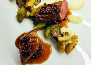 Magret de canard au jus de baies de sureau et choux de Bruxelles